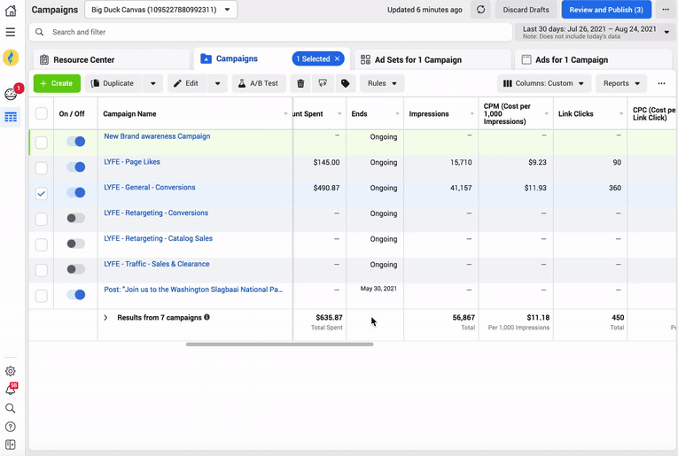 1. Preview your ad and select Publish (You can see previews in the window next to your ads).