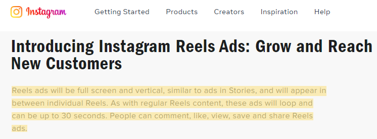 As with regular Reels content, these ads will loop and can be up to 30 seconds. People can comment, like, view, save and share Reels ads.”