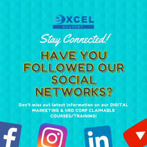 Follow us on our social media networks to keep up with the latest news and updates on our Digital Marketing (Social Media Course, Google Ads, Google Analytics, and more!) and HRD CORP Claimable (Microsoft Excel, Data Analytics and Visualization, Graphic Design, and Video Editing) courses/training! Click on the link below to follow: