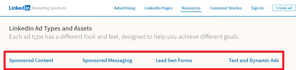 Now, there are the 4 different ad types you can run on LinkedIn, which also differ in specs and how they will look to your users.