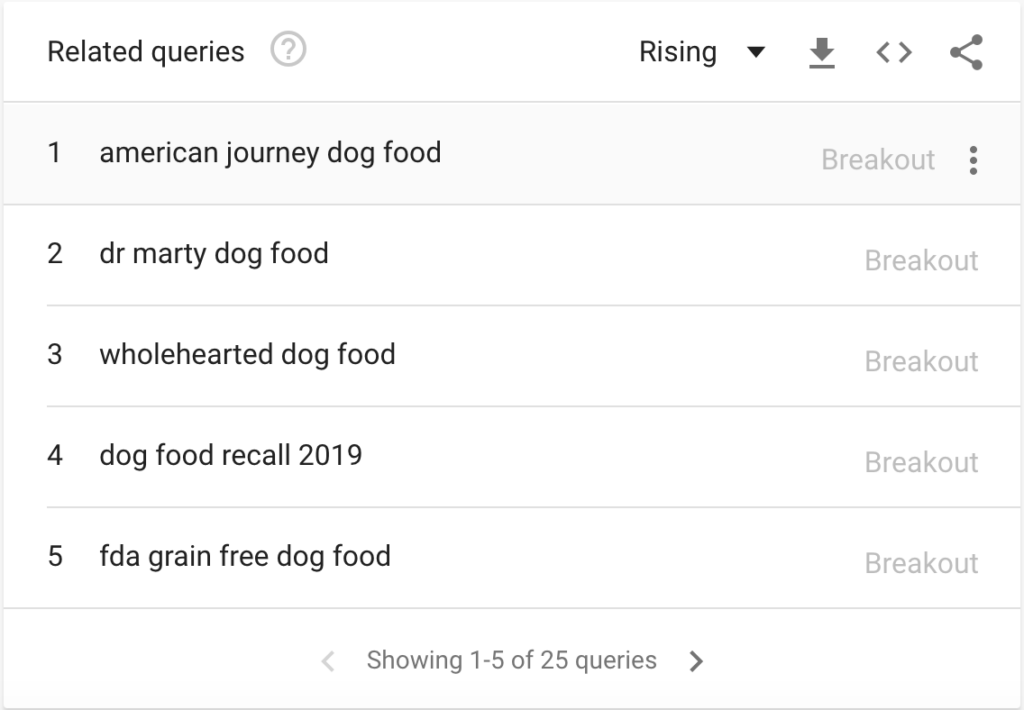 Google Trends will provide you with a list of topics that are related to the one that you searched.